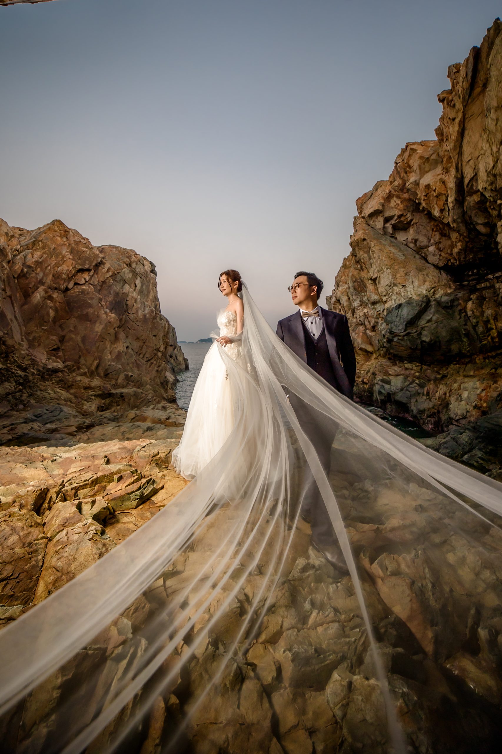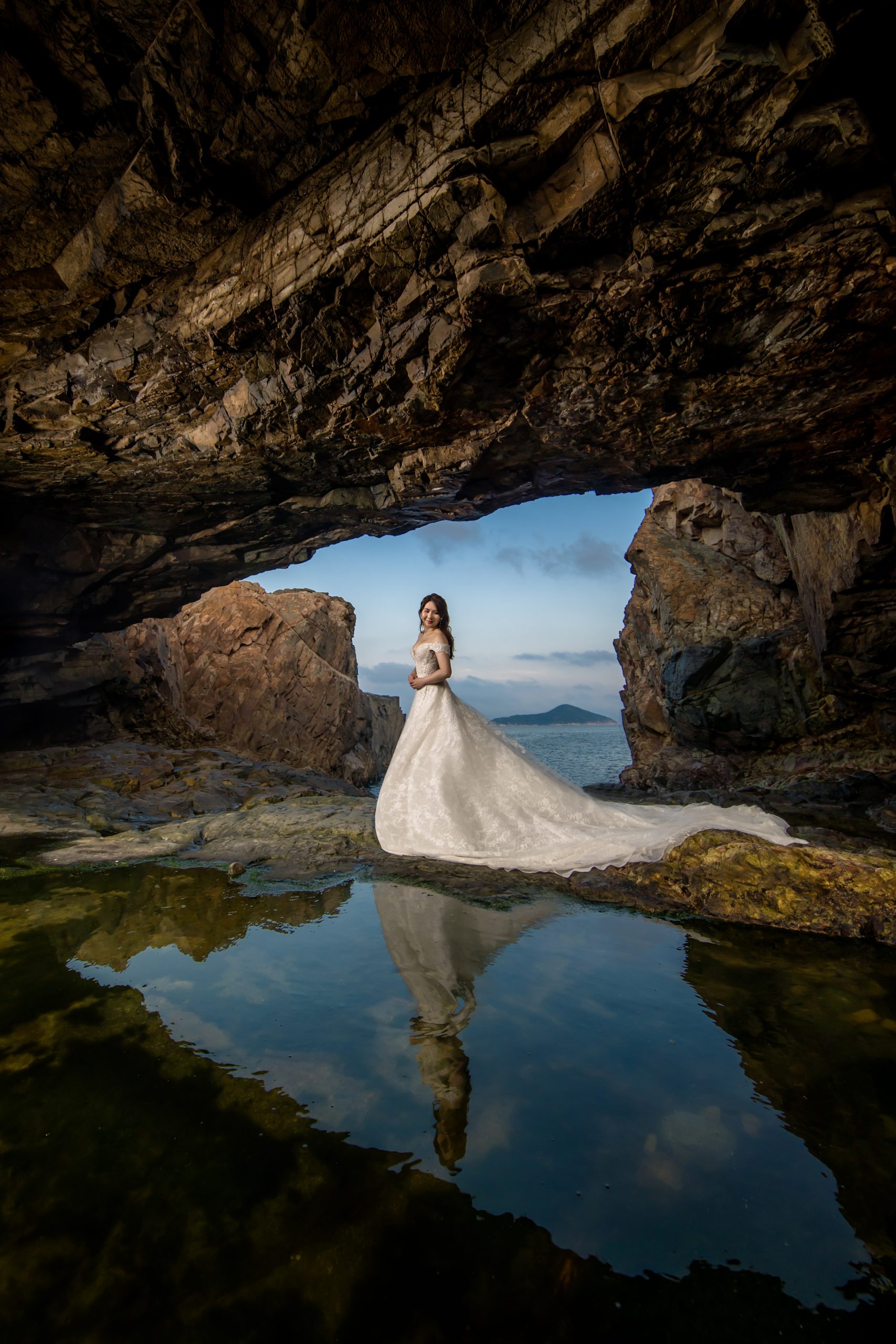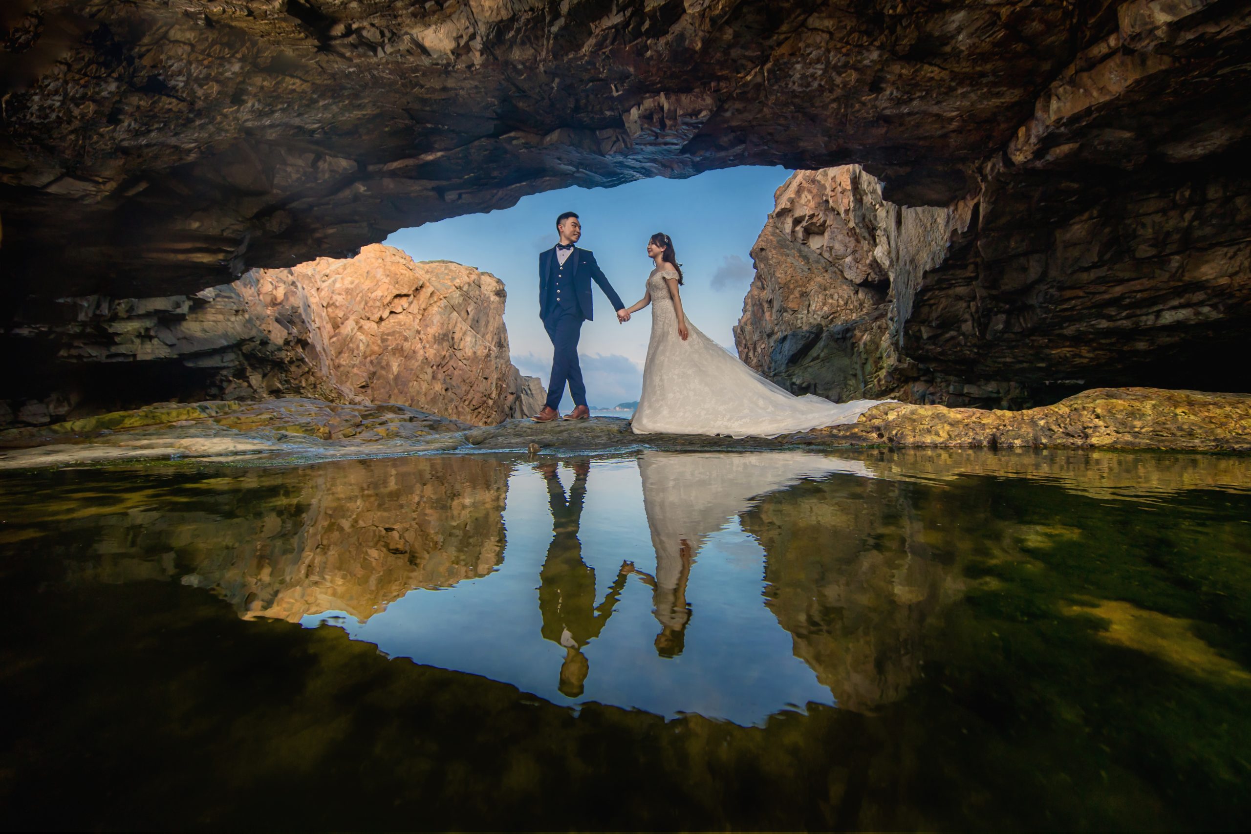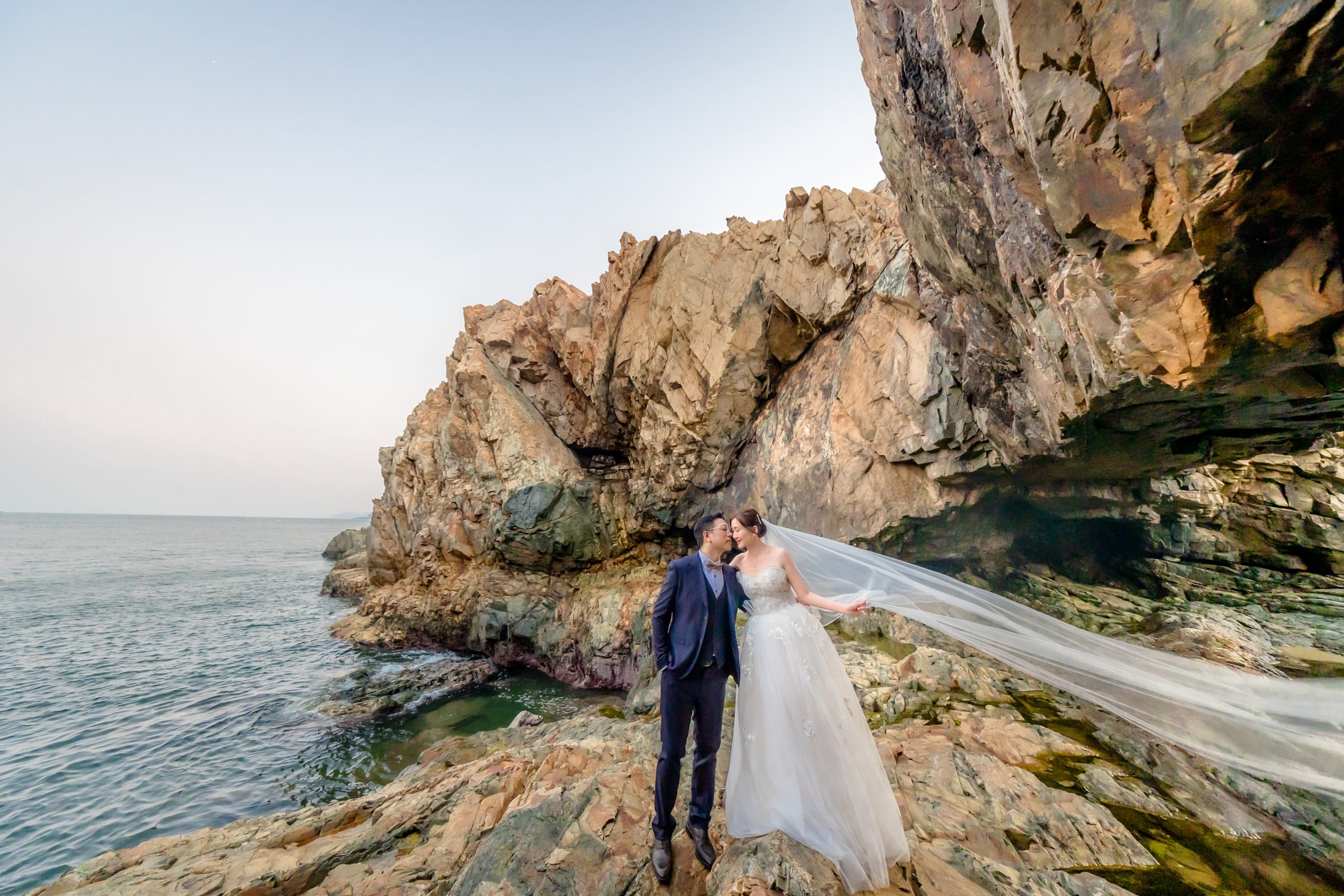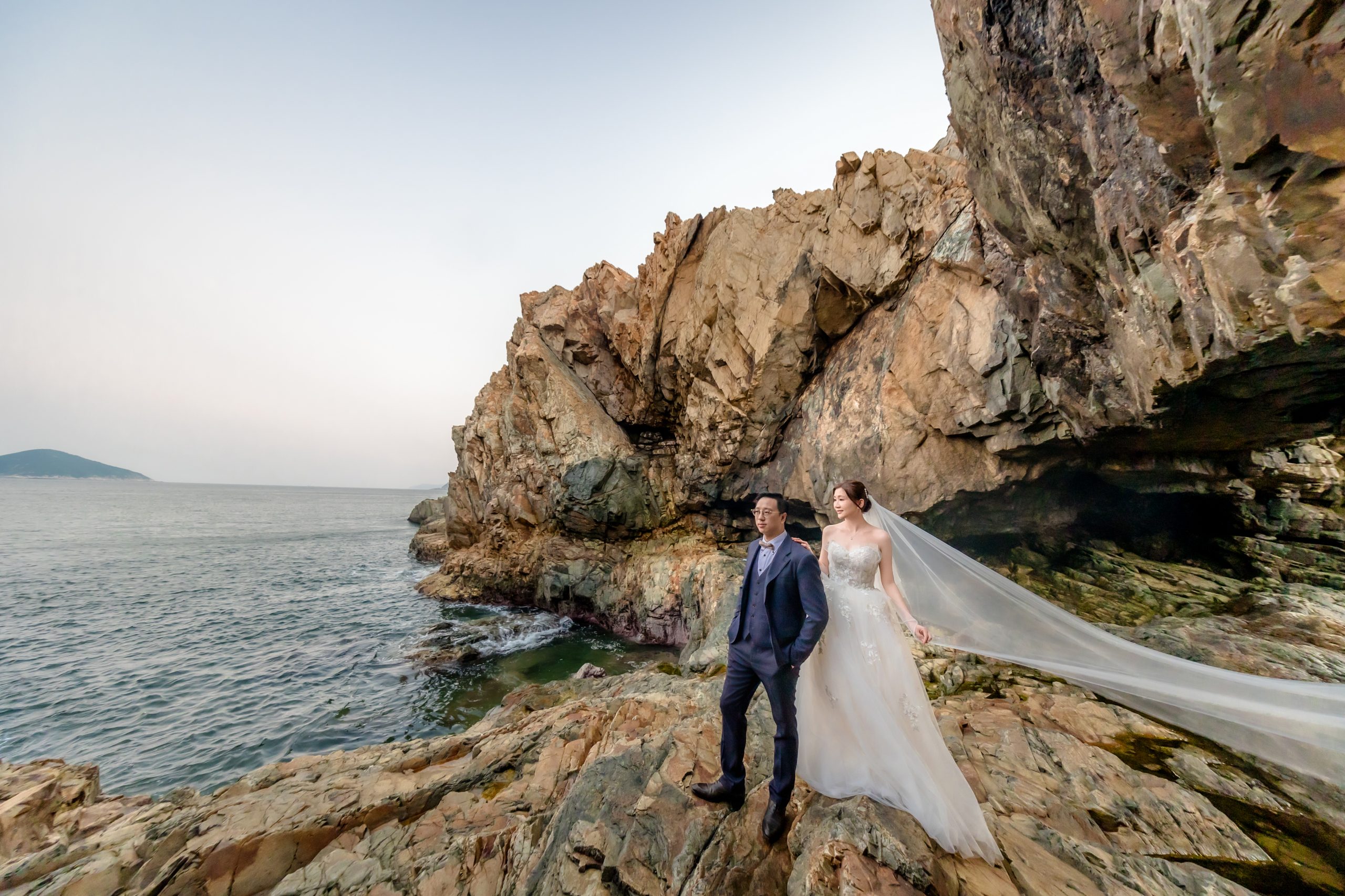 Explore the dramatic coastal majesty of Hok Tsui, where the iconic “Crab Cave” and the historic lighthouse stand as monuments to timelessness. We utilize a high-fashion, professional lens to capture your love against the raw power of the crashing tides and rugged rock formations. By masterfully sculpting the brilliant sea-level light, we transform this extreme landscape into a prestigious visual narrative—a bold, atmospheric legacy that reflects the enduring strength and radiant beauty of your union.