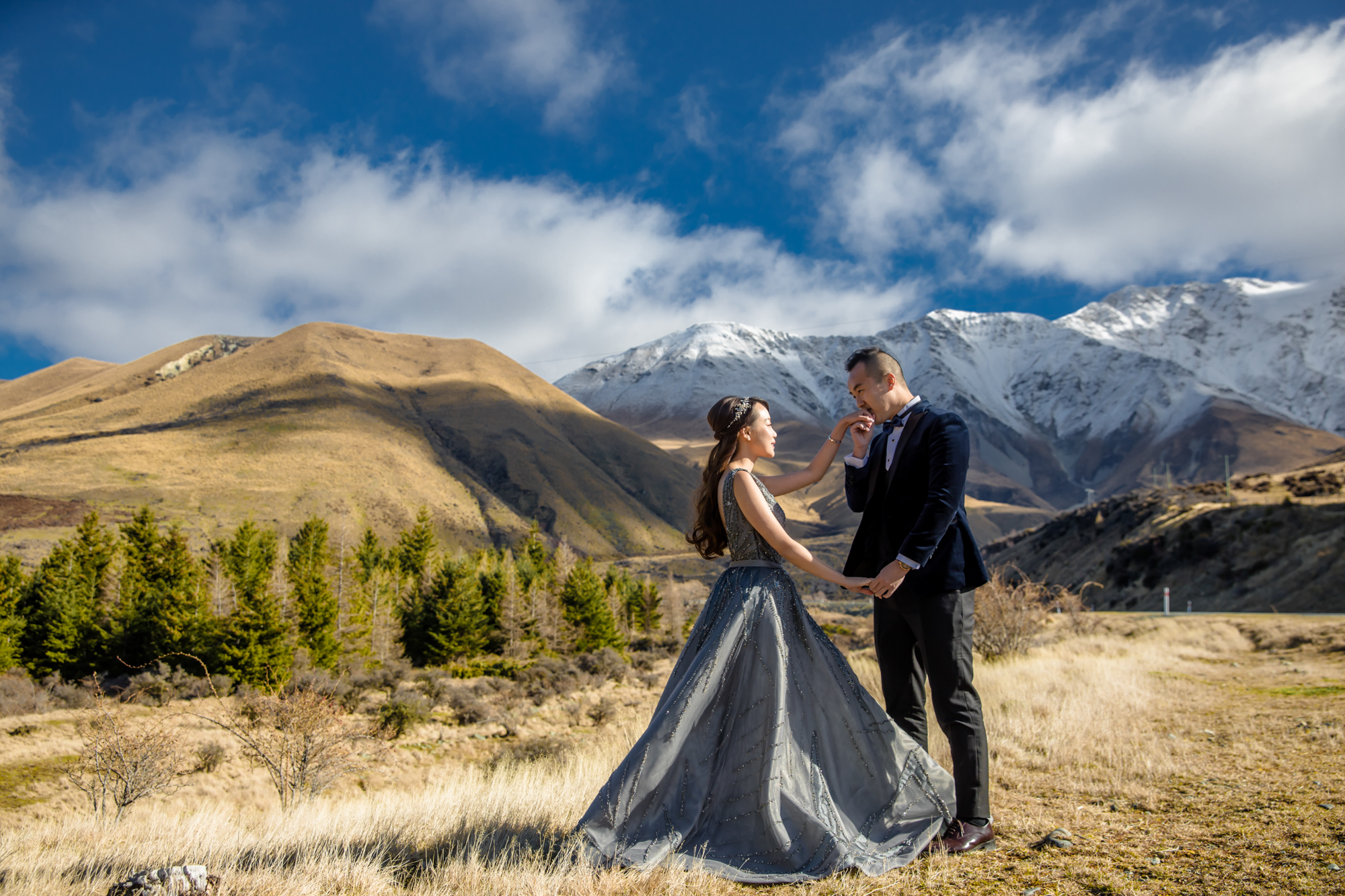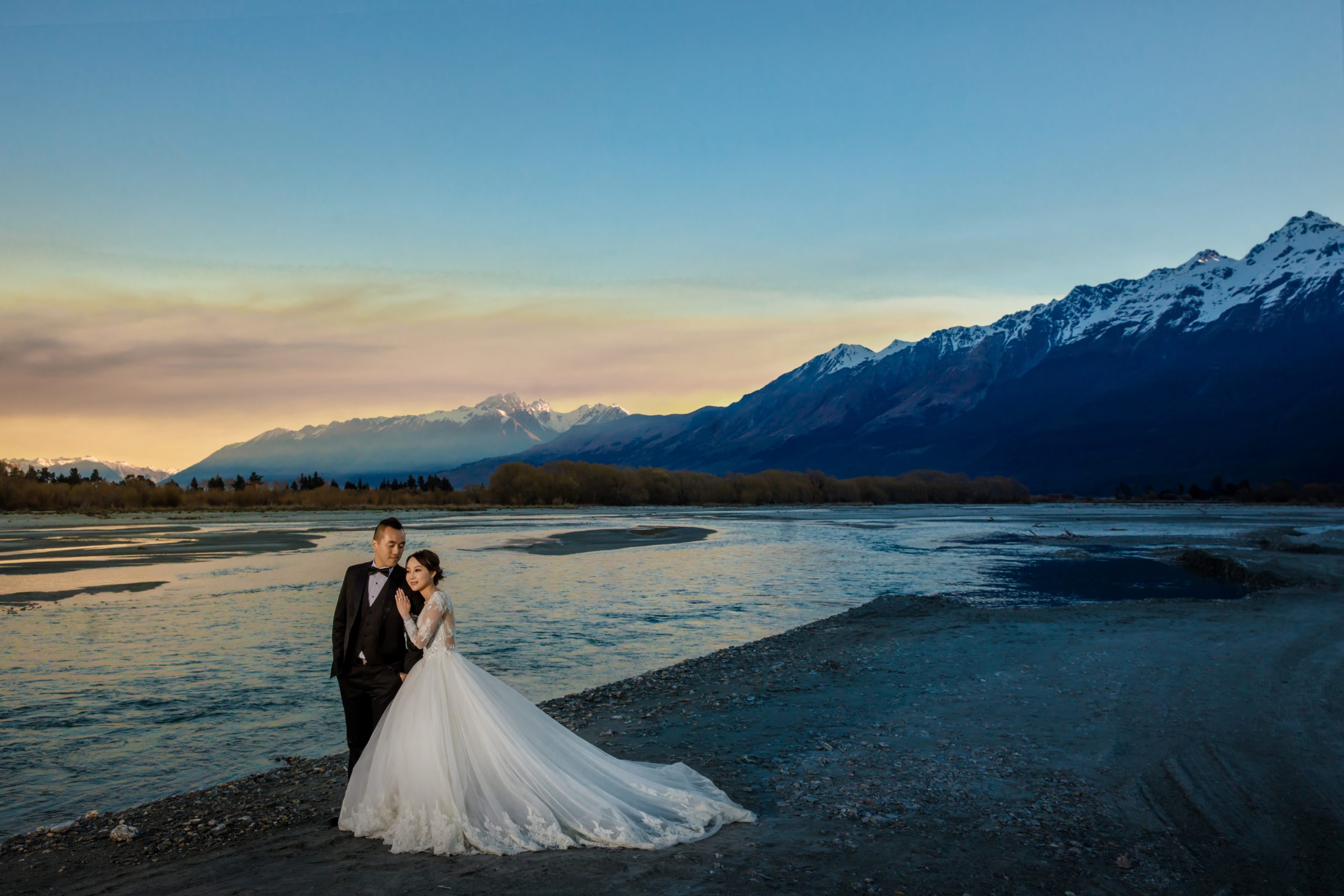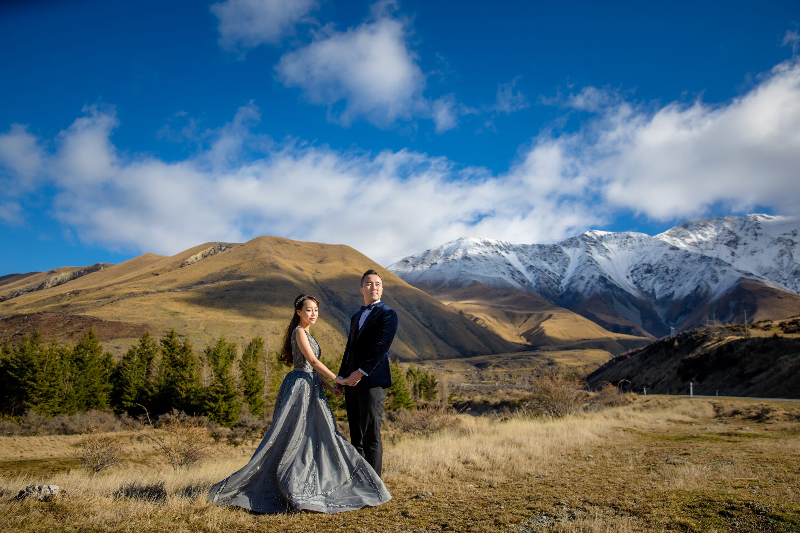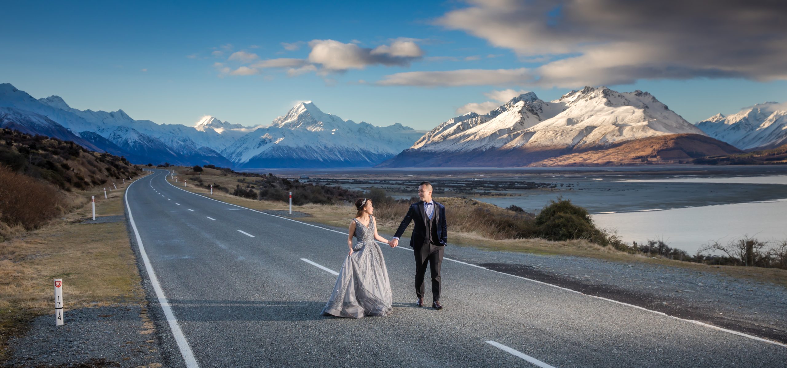 Embrace the breathtaking scale of New Zealand, where turquoise glacial lakes meet the jagged grandeur of the Southern Alps. We utilize a high-fashion lens to frame your romance against the raw, untamed wilderness—from snow-capped peaks to golden tussock plains. By masterfully sculpting the brilliant southern light and dramatic weather systems, we transform these vast landscapes into a prestigious visual legacy. This is a minimalist yet powerful narrative of love, captured in its most epic and authentic form at the edge of the world.