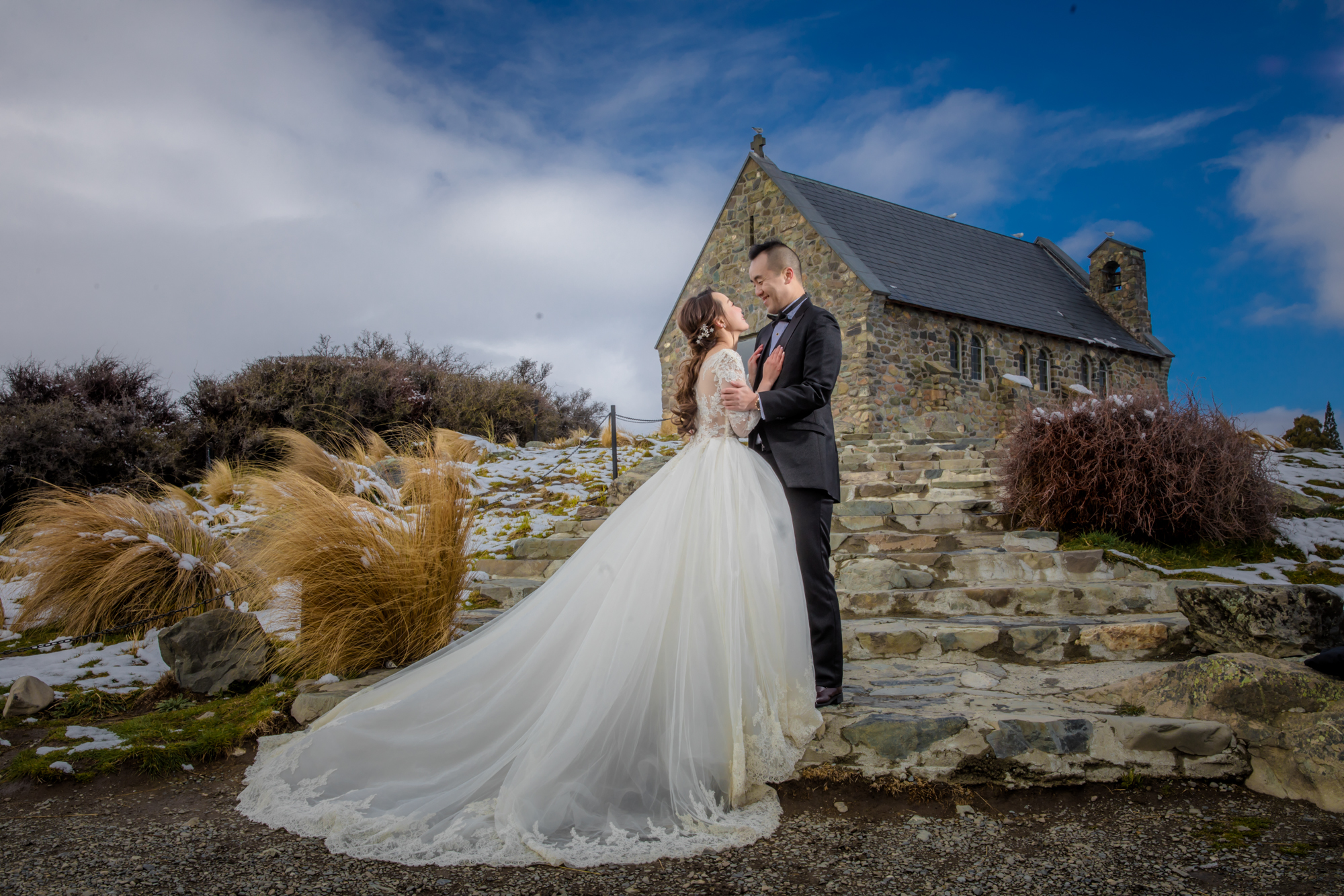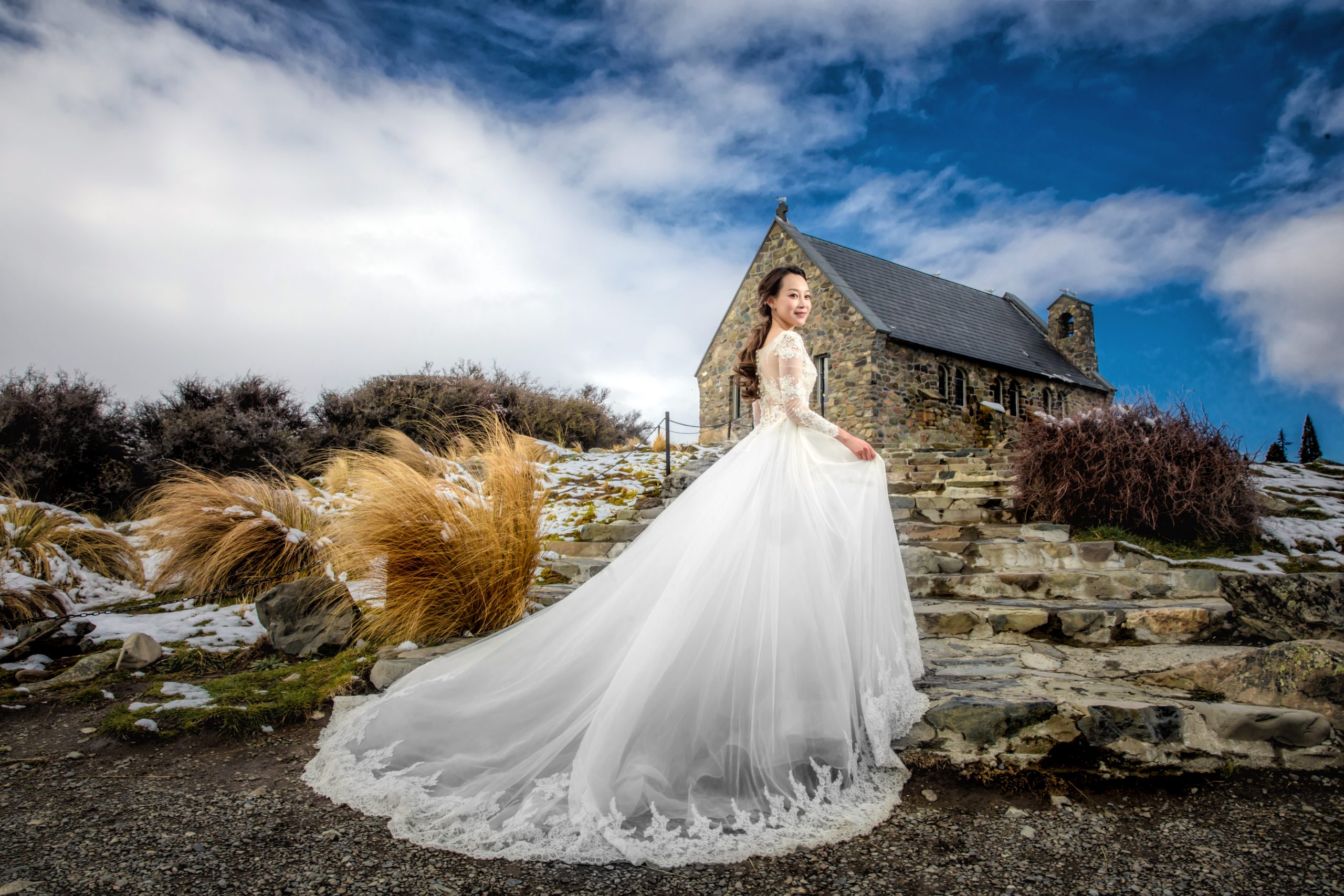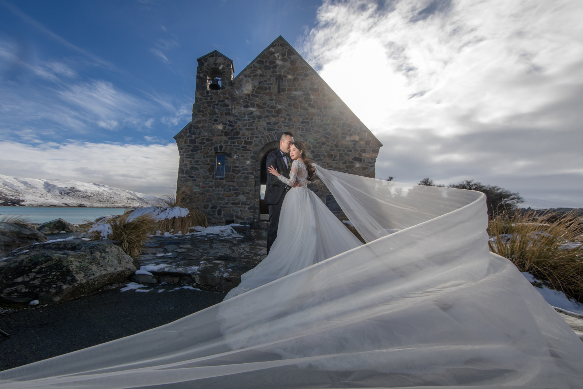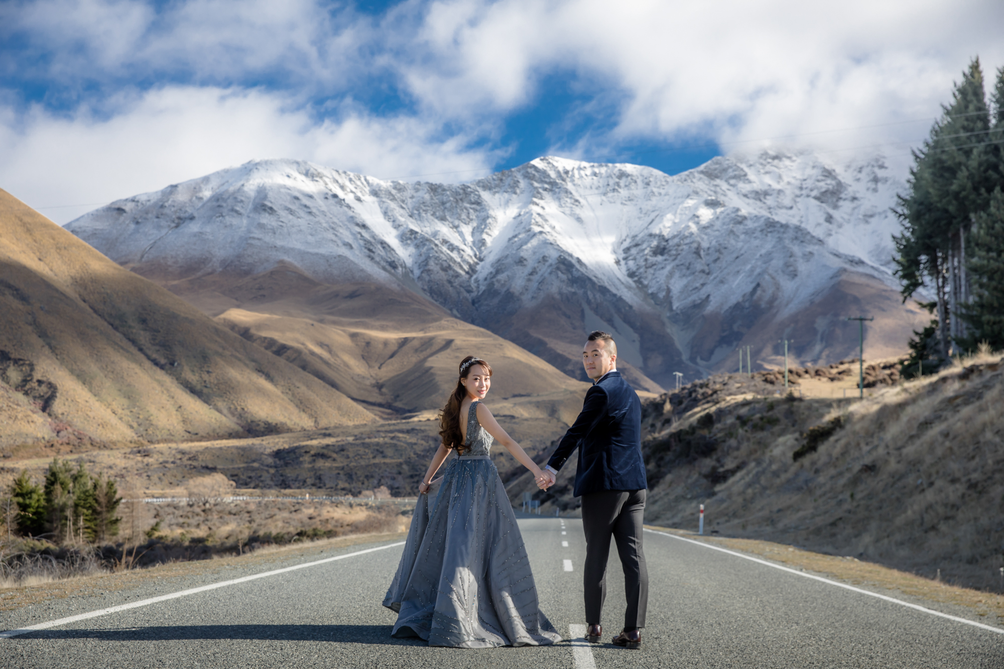 Embrace the breathtaking scale of New Zealand, where turquoise glacial lakes meet the jagged grandeur of the Southern Alps. We utilize a high-fashion lens to frame your romance against the raw, untamed wilderness—from snow-capped peaks to golden tussock plains. By masterfully sculpting the brilliant southern light and dramatic weather systems, we transform these vast landscapes into a prestigious visual legacy. This is a minimalist yet powerful narrative of love, captured in its most epic and authentic form at the edge of the world.